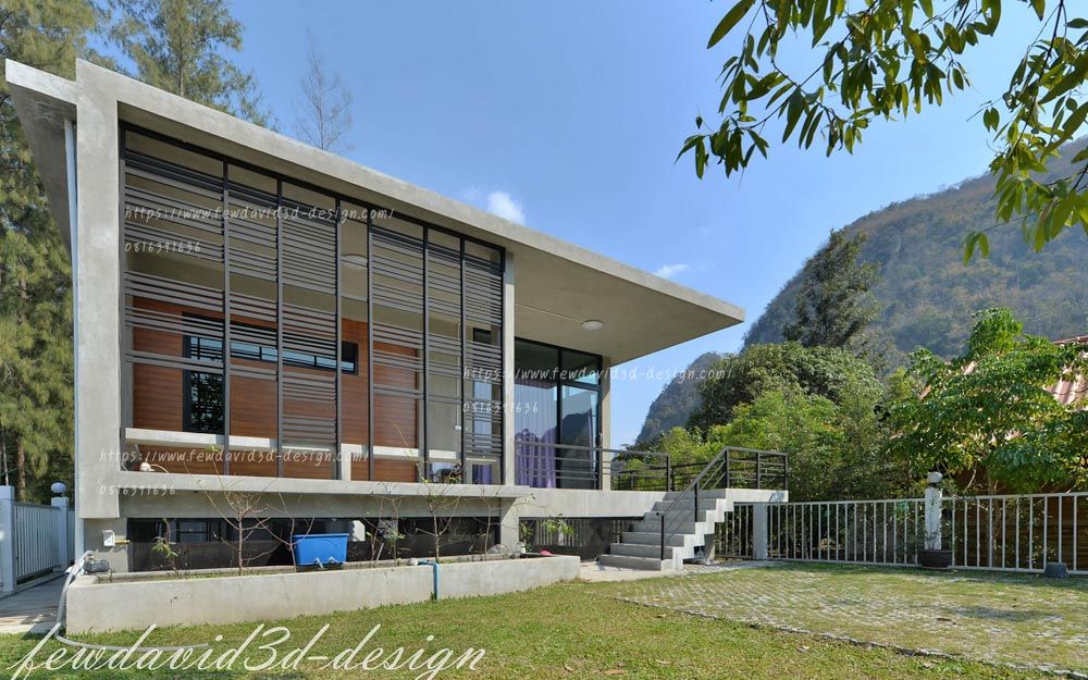 บ้านพักตากอากาศชั้นเดียว เขาใหญ่ จ.นครราชสีมา อ.ชนะ รักษ์ศิริ บ้านยกสูง สไตล์ Modern loft ที่มีความเรียบง่ายแต่เป็นเอกลักษณ์ สามารถขึ้นไปชมวิวได้ที่ชั้นดาดฟ้า